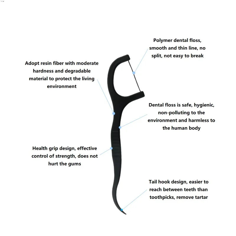 The slim, ergonomic design lets the floss glide smoothly between teeth, removing plaque and debris without harsh scraping. The built‑in toothpick tip adds a little extra usefulness, so you can handle those hard‑to‑reach spots on the go. Because the material is degradable PLA rather than conventional plastic, it aligns better with an eco‑minded routine—perfect for home, work, or travel.